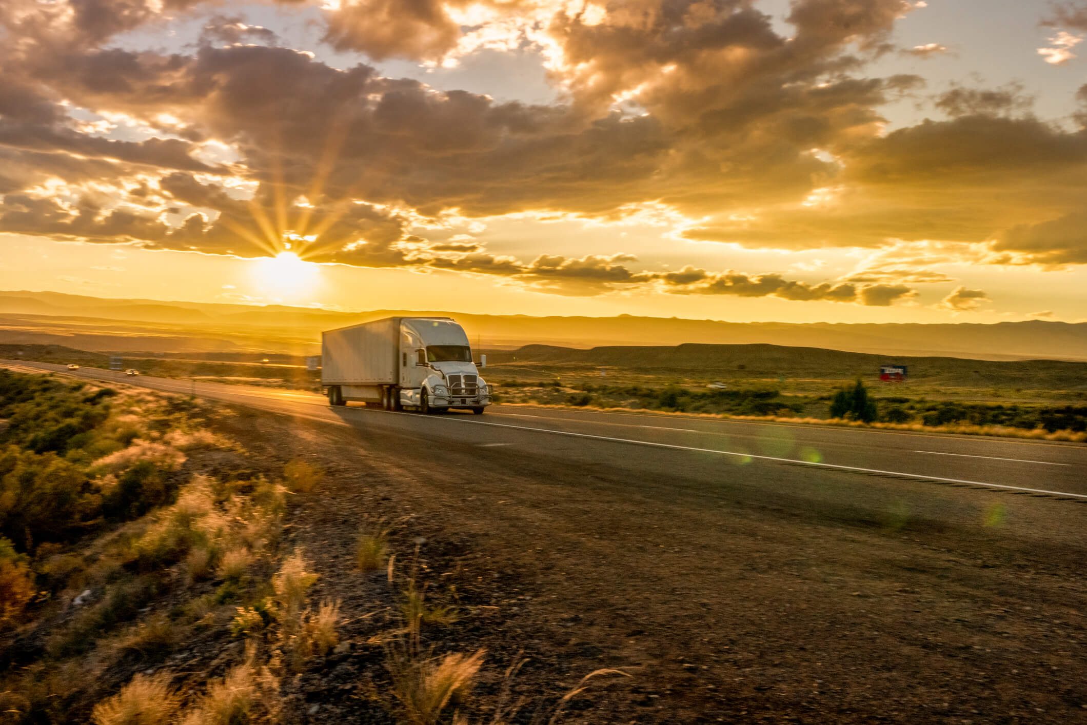 Semi-Truck on an Interstate Highway at Dusk with Cloudscape